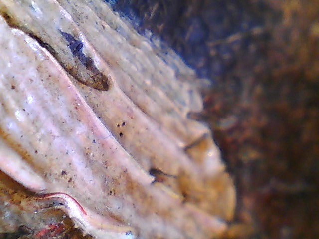Bild av färgskikt under mikroskop. Uppförstoring x50.